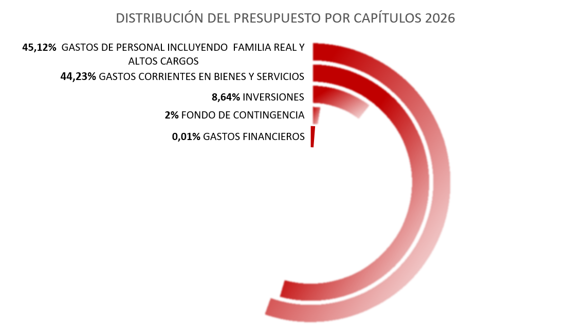 Con fecha 18 de diciembre de 2025, Su Majestad el Rey, en el ejercicio de la facultad que Le confiere el artículo 65.1 de la Constitución y en tanto no se procediese a la aprobación de una Ley de Presupuestos Generales del Estado para 2026, aprobó la distribución, para el año 2026, de la cantidad global consignada en los Presupuestos Generales del Estado para el sostenimiento de Su Familia y Casa, en los términos que a continuación se indican:
